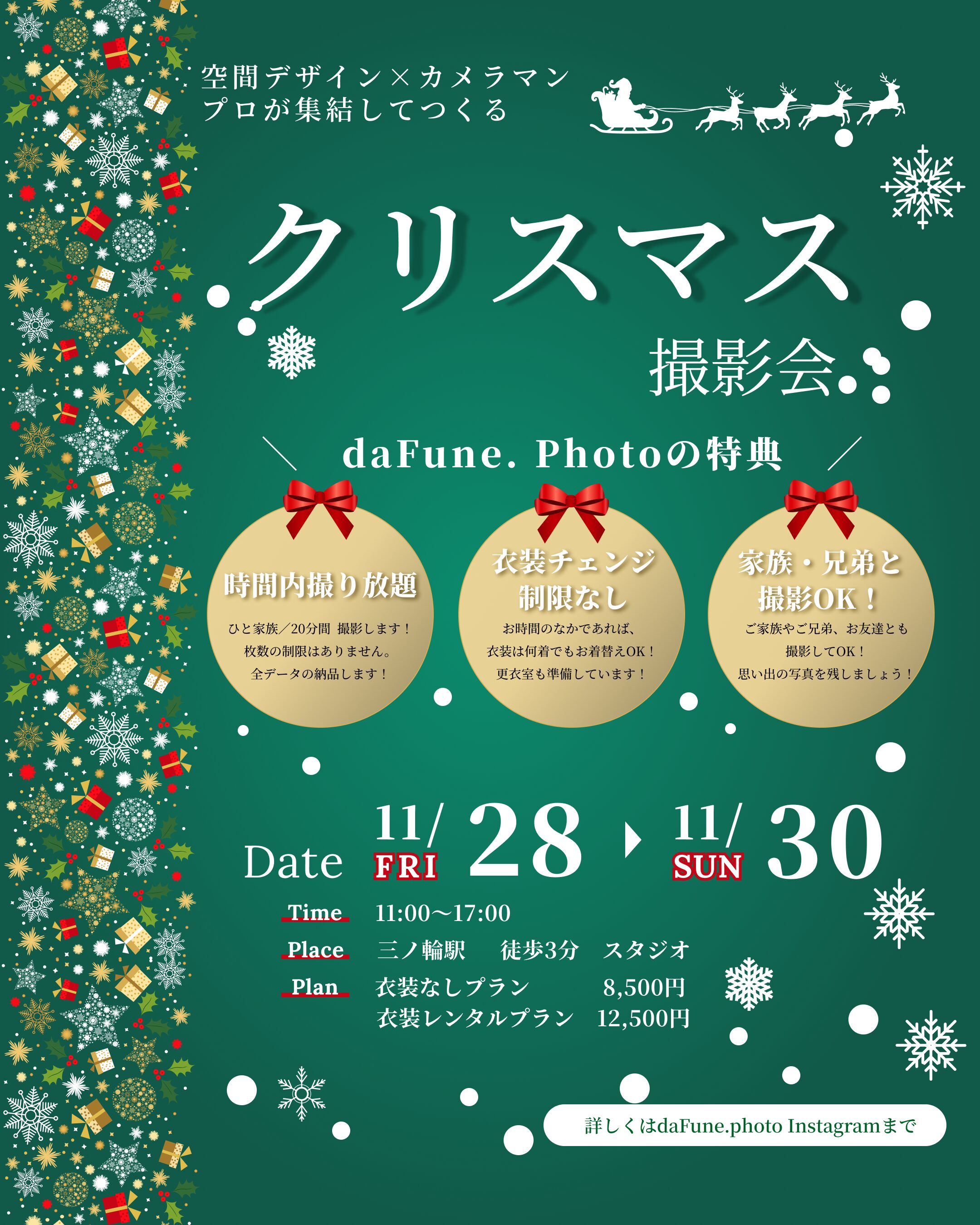 去年は、daFune.photoとして初めての開催となったクリスマス撮影会。